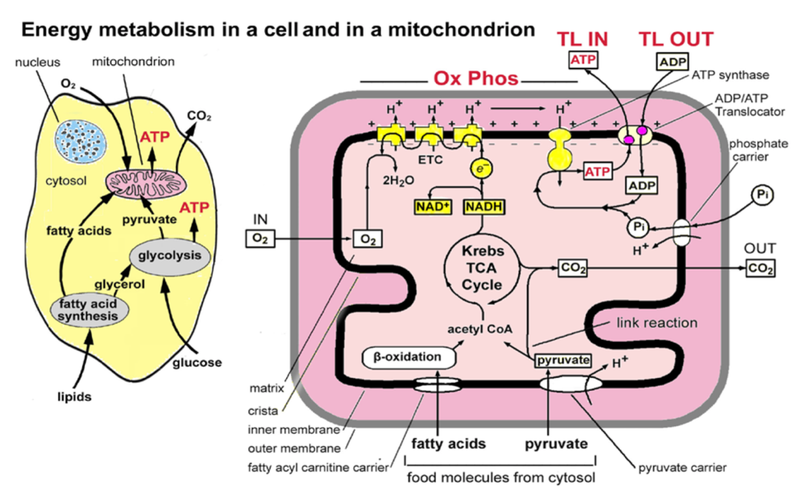 Uno dei principali meccanismi patogenetici è la disregolazione del metabolismo dei mitocondri con deficit di produzione di ATP e alterato trasporto di ioni. Tale disregolazione è favorita dalla presenza di sostanze xenobiotiche che si legano ai siti attivi della Proteina Traslocatrice (TL) e alterano sia il trasporto dell’ATP, prodotto nel mitocondrio, sia il trasporto dell’ADP citosolico. Si determina una ridotta fuoriuscita di ATP dal mitocondrio al citosol e una ridotta entrata di ADP dal citosol al mitocondrio. Il ridotto trasporto di energia (ATP) al citosol, associato a una ridotta produzione di ATP mitocondriale, favorisce lo sviluppo della Sindrome Fatica Cronica caratterizzato da fatica, astenia, affaticabilità, fiacchezza (4,5).